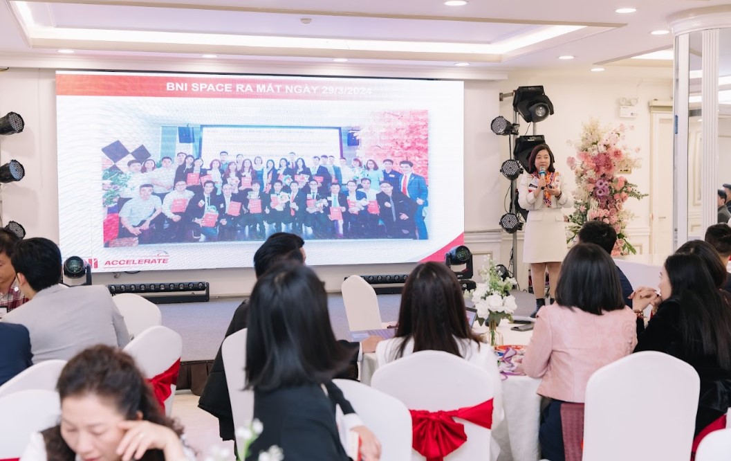 Trong không gian trang trọng của hội nghị, CEO Nguyễn Thị Hoa đã trình bày về mô hình vận hành và sự gắn kết bền chặt giữa các thành viên trong BNI Space Chapter.